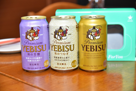 ヱビスビール記念館のツアー終了後、エリア内のビヤステーションに移動し、懇親会がスタート。美味しいビールは何杯飲んでも飽きませんね。サッポロビールの志村さんのはからいで、定番のヱビスのほかに歳暮限定「和の芳醇」、「和のつむぎ」がセットになったヱビスビールのお土産も!志村さんご配慮ありがとうございました!!